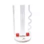 Die Apparatur Kommunizierende Röhren besteht auseinem Glaszylinder in einer Kunststoff-Bodenplatte.Unten befinden sich zwei Ausflussöffnungen mit GL-Verschraubung zur Aufnahme von zwei verschiedengeformten Glasröhren.