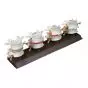 Ein außergewöhnliches Modell zur Demonstration von Verschleißerscheinungen an Wirbelkörpern und Bandscheiben. 4 Wirbelpaare, bestehend jeweils aus dem 4. und 5. Lendenwirbelkörper, zeigen von links nach rechts den gesunden Zustand, einen Bandscheibenvorfall sowie zwei aufeinanderfolgende Stadien der Wirbelkörperzerstörung.