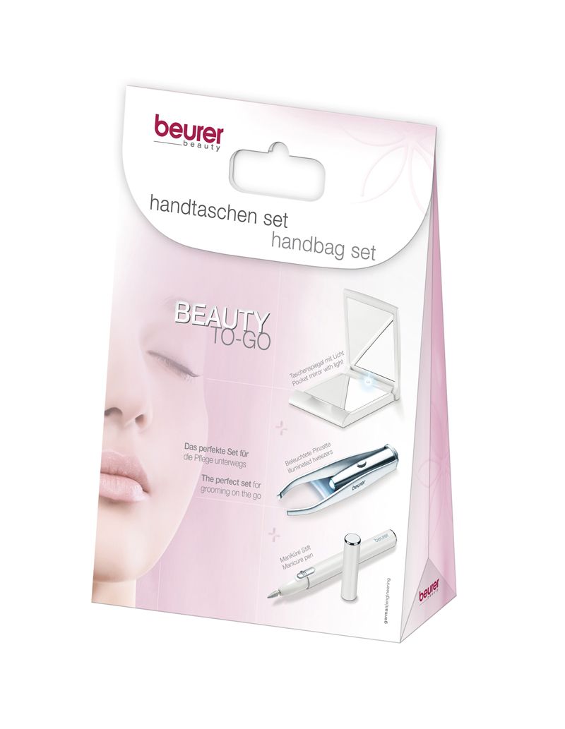 3 Produkte im Set für unterwegs: Mit dem Handtaschen Set Beauty to Go verfügen Sie über die ideale Kombination für die Pflege unterwegs, die praktisch im Handtaschen-Design verpackt ist. 3 Produkte im Set: - Beleuchteter Taschenspiegel