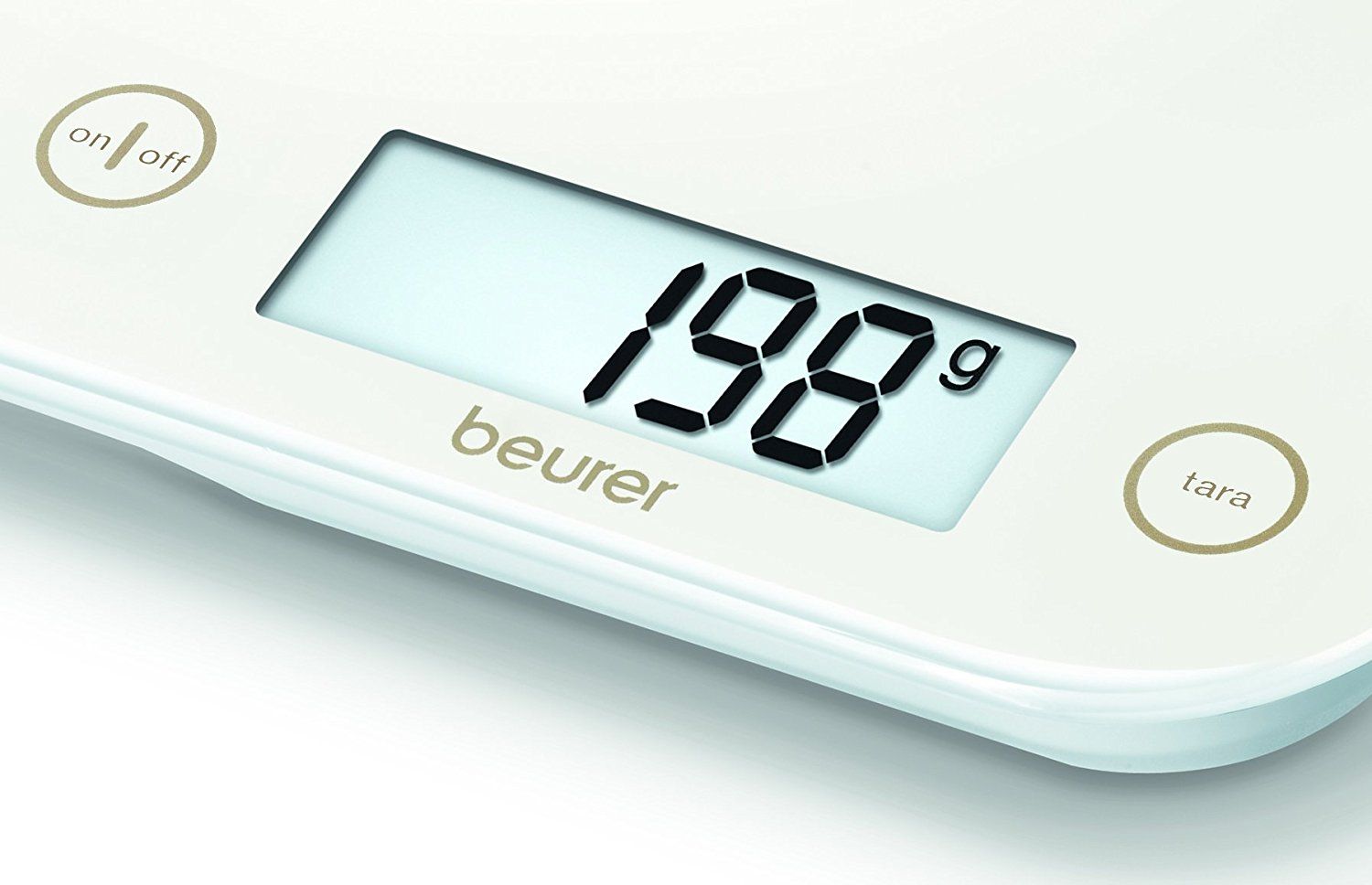 Beurer KS 48 Cream Design-Küchenwaage - Sehr flach: Nur 17 mm Glasoberfläche leicht zu Reinigen Gut ablesbares LCD-Display Moderne Sensortastenbedienung DesignLine: Schmuckstück für jede Küche