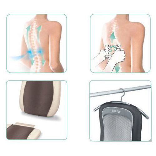 Beurer MG 290 Shiatsu-Sitzauflage - Tiefenwirksame 3D Rückenmassage und höhenverstellbare Shiatsu-Nackenmassage Punktuelle Massage, wohltuende Roll-Massage und entspannende Vibrations-Massage Zuschaltbare Licht- und Wärmefunktion Ergonomische Schalen-S