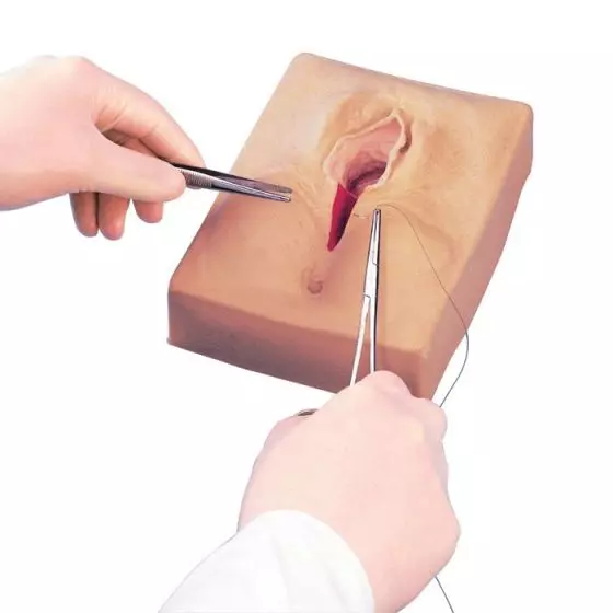 Dieser Simulator ermöglicht Studenten das realistische Erlernen von Operationstechniken ohne die Zeitzwänge und Sicherheitsbedenken beim echten Patienten. Der Simulator ist tragbar und besitzt eine naturgetreue Beschaffenheit, die dem Studenten ermöglicht, ein Gefühl für die Handhabung der Instrumente, den Druck auf die Naht und die jeweiligen Vorteile einer bestimmten Verknotungsmethode zu entwickeln. Das Set beinhaltet einen medianen Dammschnitt sowie einen linken und einen rechten mediolateralen Dammschnitt und wird im Transportkoffer geliefert.