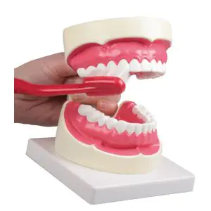 Diese Naturabgüsse von 4 Ober- und Unterkieferhälften auf Stativ zeigen die besonderen Merkmale der verschiedenen Entwicklungsstadien: * Neugeborenes * Ca. 5-jähriges Kind * Ca. 9-jähriges Kind * Junger Erwachsener