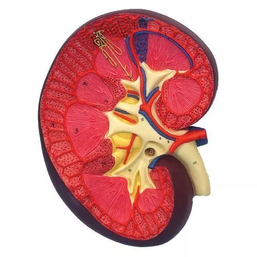 Längsschnitt der rechten Niere. 3-fache Größe. Auf Grundbrett.