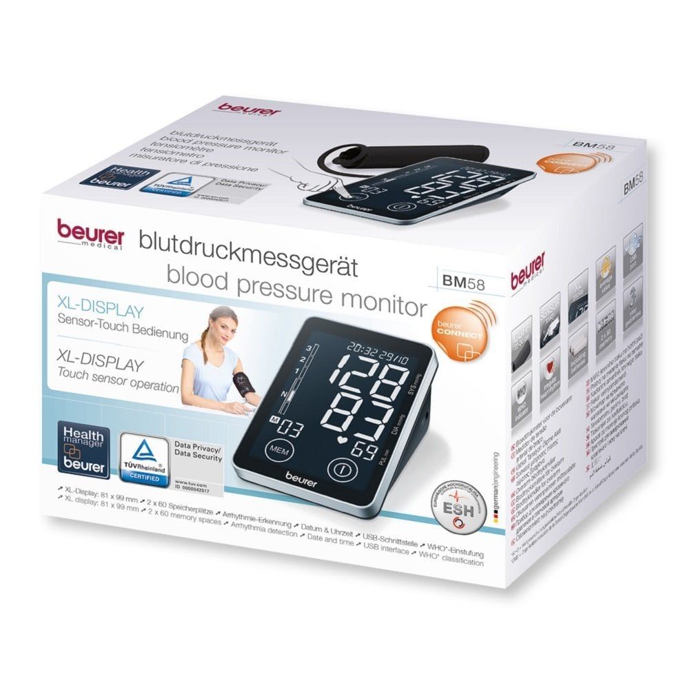 Oberarm-Blutdruckmessgerät mit Touch Screen Display Beurer BM 58 - Vollautomatische Blutdruck- und Pulsmessung am Oberarm - Touch-Screen-Display - WHO-Einstufung und Arrhythmie-Erkennung