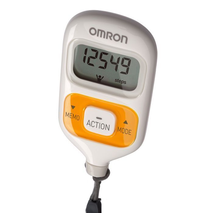 Omron HJ 203E Schrittzähler orange - Gewicht ca. 19 g mit Batterie - Größe 3,5 cm x 6,8 cm x 11 cm - Farbe: Orange - Garantie: 3 Jahre