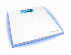 Die Personenwaage ISB von Medisana verbindet ein modernes, patentiertes Design mit hochwertiger Messtechnik durch ausgefeilte Sensor-Technologie. Dank der vier hochpräzisen DMS-Sensoren erfasst sie das jeweilige Körpergewicht genau. Sie starten die Personenwaage ISB durch die bequeme „step-on“-Funktion, indem Sie leicht auf die rutschfeste Trittfläche treten. Der Messbereich reicht bis zu 180 Kilogramm, 396 Pfund oder 28 Stone – je nachdem, welche Maßeinheit sie wählen. Außerdem verfügt die Waage über eine automatische Abschaltung nach acht Sekunden und 10 Speicherplätzen. Großes, leicht lesbares LCD-Display mit Hintergrundbeleuchtung Herzstück der Körperanalysewaage ISB mit ihrem schlichten Design ist das große, leicht lesbare LCD-Display mit Hintergrundbeleuchtung. Auch bei schlechtem Licht oder sogar bei Dunkelheit zeigt die Waage komfortabel Ihr aktuelles Körpergewicht an. Die Anzeige verweist auch auf Überladung oder eine schwache Batterie. Moderne, blaue LED-Randbeleuchtung Zur rutschfesten Trittfläche kommt die moderne, blaue Randbeleuchtung der Personenwaage ISB. Die Fläche der Waage wird von einem schönen blauen Rahmen umgeben und bietet somit eine optische Abgrenzung zum Untergrund. Produktdetails Direktmessung des Körpergewichtes Bequeme „Step-On“ -Einschaltung Automatische Abschaltung nach 8 Sekunden Trittfläche aus 8 mm Sicherheitsglas Moderne, blaue LED-Randbeleuchtung Großes, leicht lesbares LCD-Display mit Hintergrundbeleuchtung Rutschfeste Trittfläche 10 Speicherplätze Umschaltbar zwischen kg, lb und st Vier hochpräzise DMS-Sensoren für genaue Messergebnisse Patentiertes Design Größe: ca. 31,9 x 31,9 x 2,15 cm Gewicht: ca. 2,6 kg Gewichtsanzeige bis 180 kg, 396 lb, 28 st Teilung: 100 g, 0,2 lb, ¼ lb Displaygröße: 10,5 x 4,4 cm Batterien: 3 x 1,5 V (AA); Im Lieferumfang enthalten