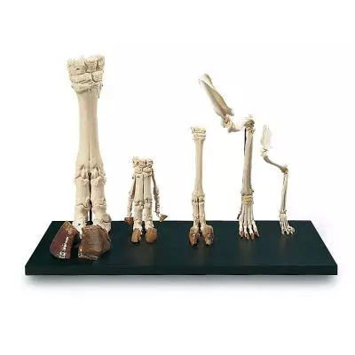 Diese Modellserie ermöglicht einen anschaulichen Vergleich der unterschiedlichen Fußformen von Säugetieren. Bestehend aus Fußskeletten von Pferd oder Rind, Schwein und Schaf mit separat montierten Hufen sowie Beinskeletten mit Schulterblatt von Katze oder Hase und Hund. Auf Holzsockel montiert. Bitte beachten Sie, dass das Bein auch ohne Schulterblatt geliefert werden kann.