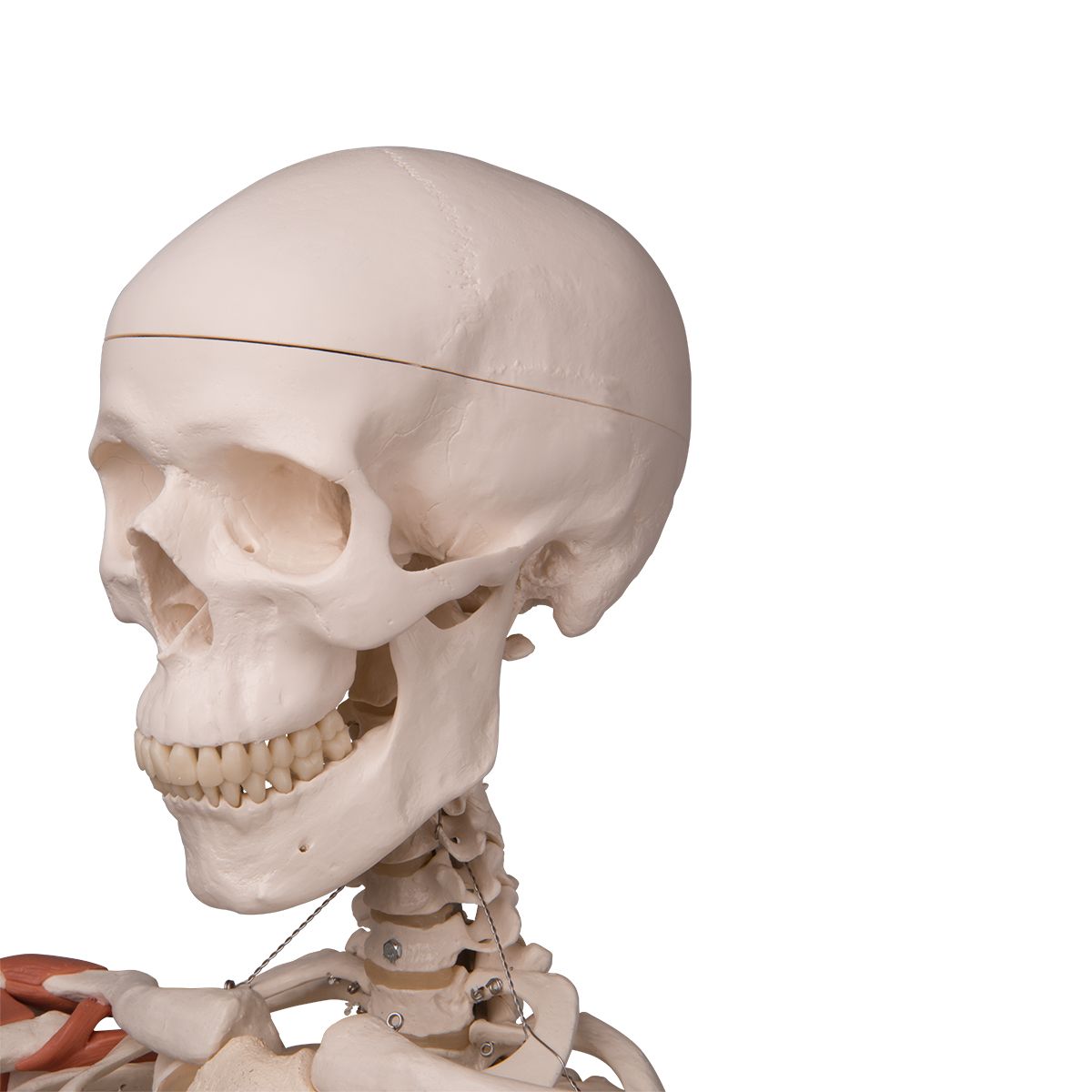 Leo bietet neben den Standardvorteilen eines 3B Scientific®Skeletts zusätzlich noch die Darstellung der funktional-anatomischen Zusammenhänge zwischen Knochen und Gelenkbändern. Seine elastischen Gelenkbänder an den größeren Gelenkverbindungen (Schulter, Ellenbogen, Hüfte und Knie) auf der rechten Seite montiert. • Einmaliges Preis-Leistungs-Verhältnis • 3 Jahre Garantie • Erstklassiger Naturguss "Made in Germany" • Endmontage in Handarbeit • Hergestellt aus haltbarem, unzerbrechlichem Kunststoffe • Annähernd realistisches Gewicht der ca. 200 Knochen • Natürliche Größe • 3-teilig montierter Schädel • Einzeln eingesetzte Zähne • Schnell und einfach abnehmbare Gliedmaßen • Lieferung inklusive Stativ und Staubschutzhülle