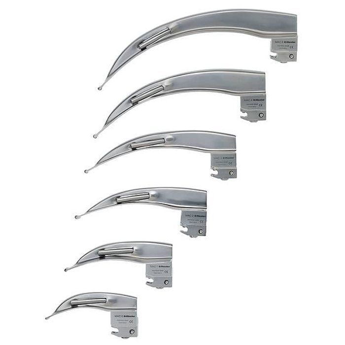 Spatel Mac Intosh und Miller F.O für Laryngoskop Riester Ri-Modul - Spatel Mac Intosh F.O : N°0, N°1, N°2, N°3, N°4, N°5 – Spatel Miller F.O : N°00, N°0, N°1, N°2, N°3, N°4 - Abgerundete Kanten