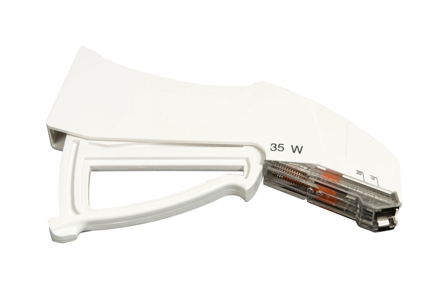 Vorrichtung zum Vernähen von Einschnitten. Steril, Einzelnutzung. Einzelverpackung. Déthylène-Sterilisation. 35 Speicher Heftklammern (0,5 mm Durchmesser - 5,9 x 3,9 mm) aus Edelstahl. Bote 5 Zimmer