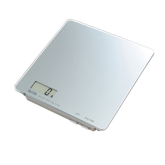 TANITA KD-404 Küchenwaage - Hygienische Glasoberfläche - Farbe: Glas / Silber - Wiegekapazität: 3 kg - Gewicht Teilung Gewicht: 1 g Garantie: 3 Jahre - Inklusive Batterien
