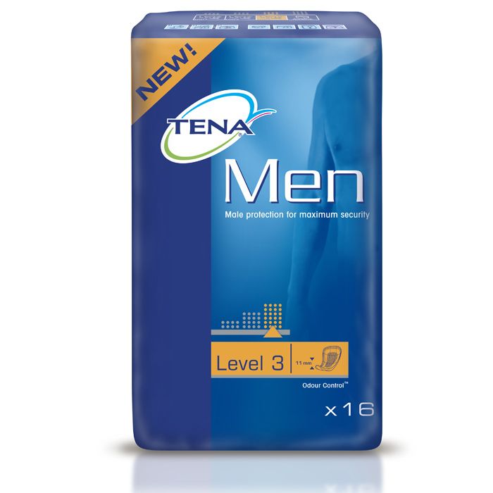 TENA Men level 3 (16 Stück) - Speziell für Männer mit mittlerer Blasenschwäche - Speziell an die männliche Anatomie angepasst für hohen Tragekomfort und Diskretion.